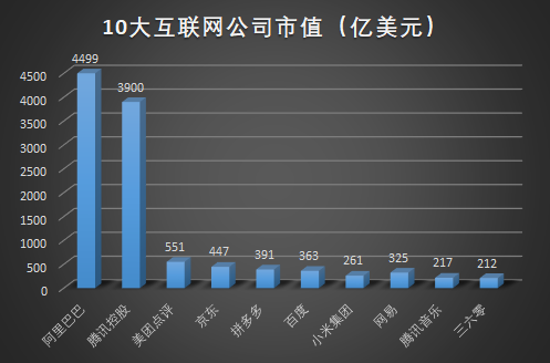 中国互联网上市公司又经历了一次洗牌。截至周四收盘,阿里巴巴集团市值为4499亿美元,为中国市值最高的互联网公司。
