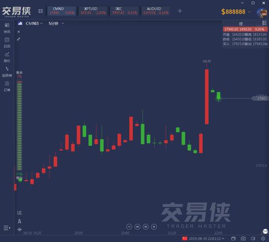 周五(8月30日)傍晚,伦镍短线快速拉升,涨幅从2%迅速拉升至4.3%,涨至17000美元/吨上方,为2014年来首次;LME期镍同样急速拉升,涨幅为8%,报17729美元/吨。晚间21:57,伦镍涨幅扩大至10%,涨至18135美元/吨,刷新2014年9月来新高。此前市场消息称,印尼将自12月末开始禁止镍矿石出口。