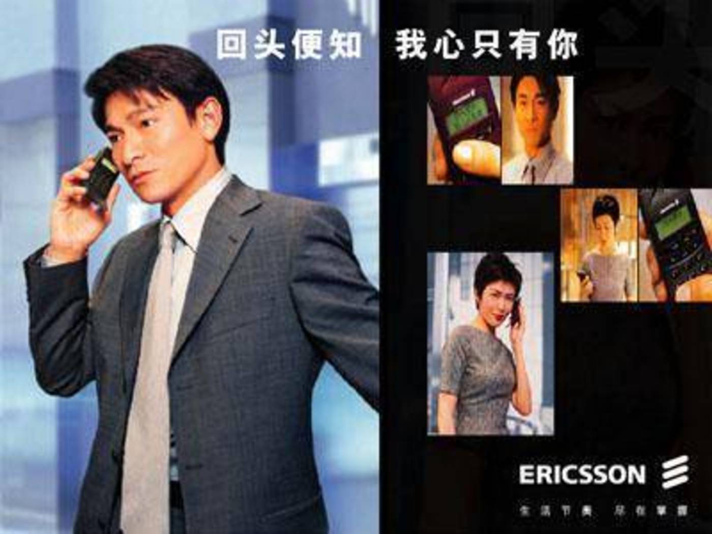 为宣传手机,当年爱立信找到了巨星刘德华出演系列广告,再配上流行音乐和“事业一定争取,对你从未放弃”“回头便知,我心只有你“等经典广告语,迷倒万千少女的同时也让爱立信手机登上国内神坛。