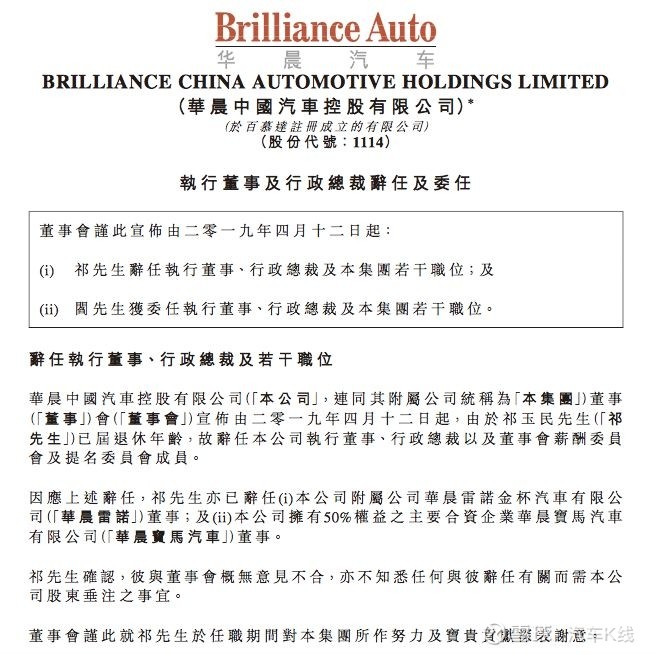 今年4月12日,华晨中国突然发布公告宣布,即日起,祁玉民辞任执行董事、行政总裁及本集团若干职位;阎秉哲获委任执行董事、行政总裁及本集团若干职位。
