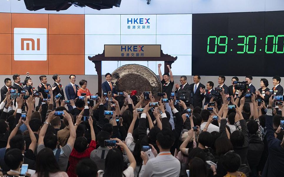 2018年7月9日上午,作为港交所“同股不同权”新规实施后的第一股小米集团(1810.HK)正式在香港交易所上市。 图/视觉中国