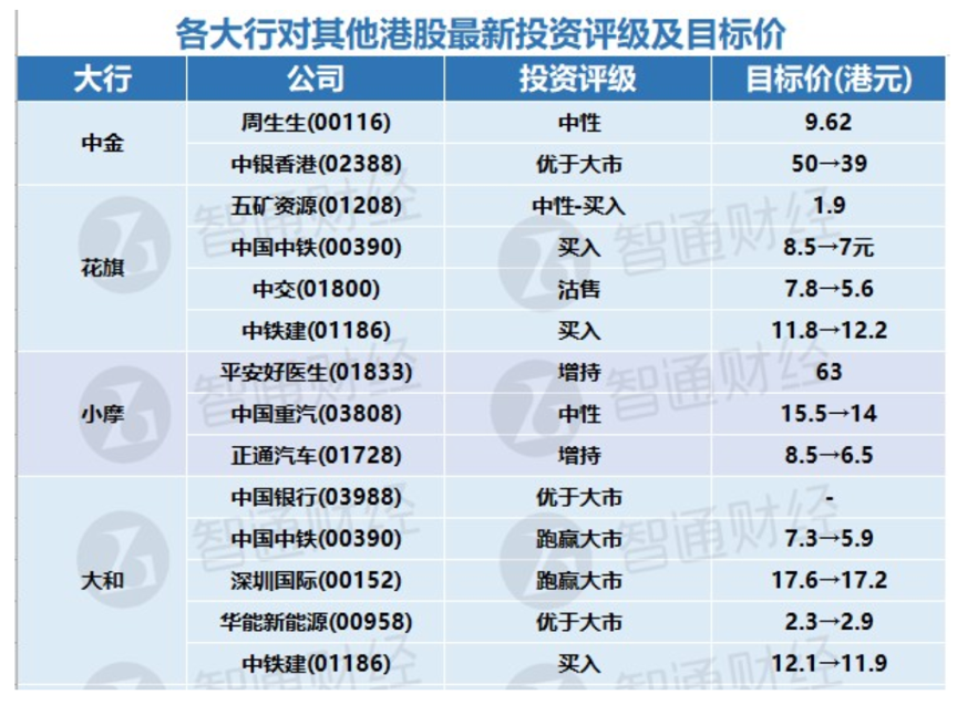 中国中铁(00390):遭花旗降目标价至7港元,予“买入”评级。