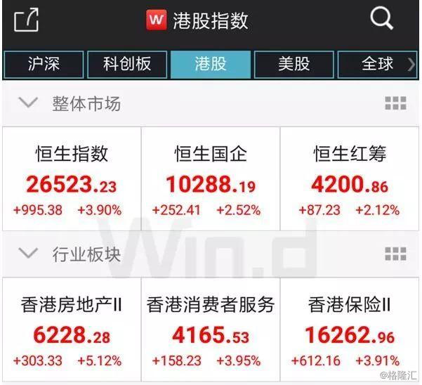 与此同时,周三港股也迎来罕见的放量大涨,恒指放量收涨3.9%,日内涨超千点,创去年11月2日以来最大单日涨幅。恒生中国企业指数涨2.52%,报10288.19点;恒生香港中资企业指数上涨2.12%,报4200.86点。香港本地地产股自低位大幅反弹,消费股亦造好。