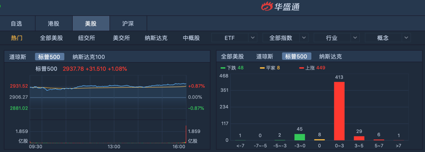 周三,国际地缘政治形势趋于缓和,提振风险投资兴趣,美股周三集体收高。截至收盘,道指上涨0.91%,报26355.47点;标普500指数涨1.08%,报2937.78点;纳指涨1.30%,报7976.88点。