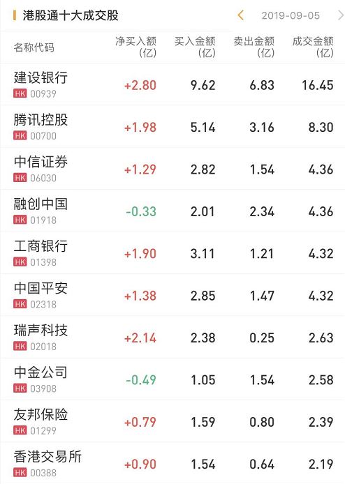 净卖出融创中国0.33亿港元,中金公司0.49亿港元。