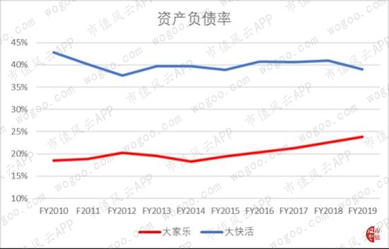 大家乐集团的资产负债率在2014财年后略有上升,但总体上较为稳定。2019财年,大家乐集团和大快活集团的资产负债率分别为24%和39%。