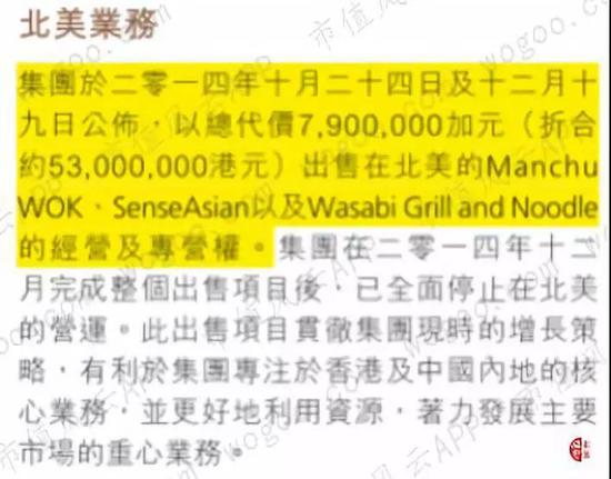 但是大家都懂的,大家乐集团之所以出售北美业务,主要是因为“Manchu WOK”, “SenseAsian” 和 “Wasabi Grill and Noodle”这三个连锁餐饮品牌在北美市场的表现不如人意。