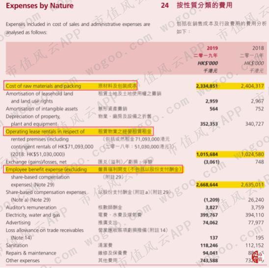 两家公司都将除了行政费用之外的期间费用,包含原材料费用、员工费用、租金、设备维修费用、水电费、折旧和摊销费用等,均计入到销售成本之中。