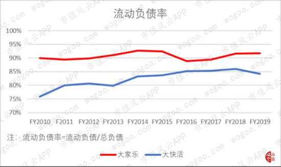 两家公司的负债历年来均以流动负债为主。以2019财年为例,大家乐集团和大快活集团的流动负债占总负债的比重分别为92%和84%。