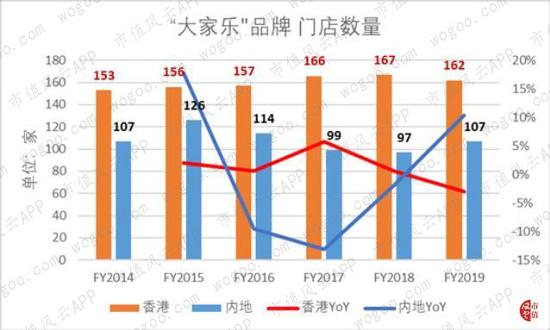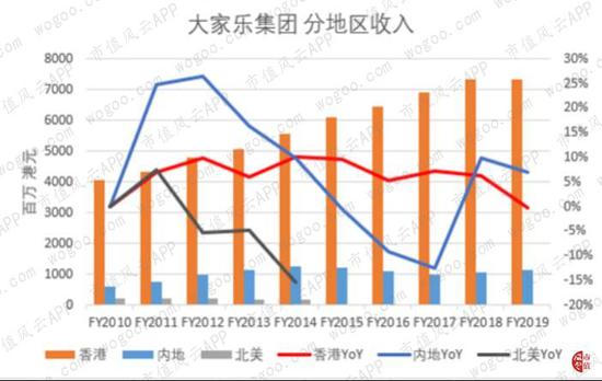 而营收增速自2012财年起一路下滑,更在2015-2017财年连续三年为负的内地市场,在2018财年的表现却如奇迹般反弹,当年营收同比上升10%至10.8亿港元,占总营收的12.8%。