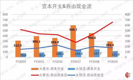 由于两家公司近年来每年净增加的门店数量保持在个位数以内,资本开支的波动总体来看并不大,自由现金流的状况也较为良好。