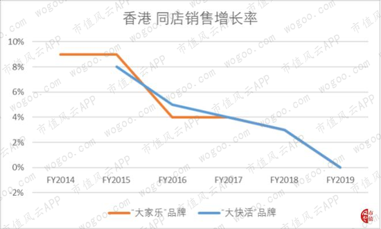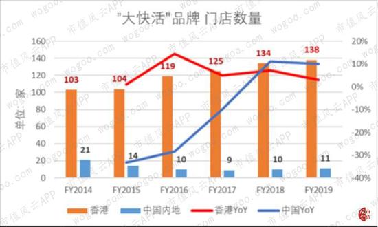 2019财年,“大快活”和“大家乐”两个品牌在香港的同店销售增长率均为零。