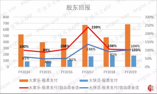 2019财年,大家乐集团和大快活集团的现金分红分别为6.8亿港元和1.8亿港元,现金分红率分别为103%和104%。