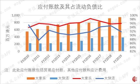 而在历年的流动负债中,又以应付账款为主。2019财年,大家乐集团和大快活集团的应付账款占流动负债的比重分别为96%和92%。