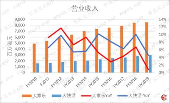 我们再来看看大家乐集团以及它的兄弟大快活集团各自的营收规模和成长性。