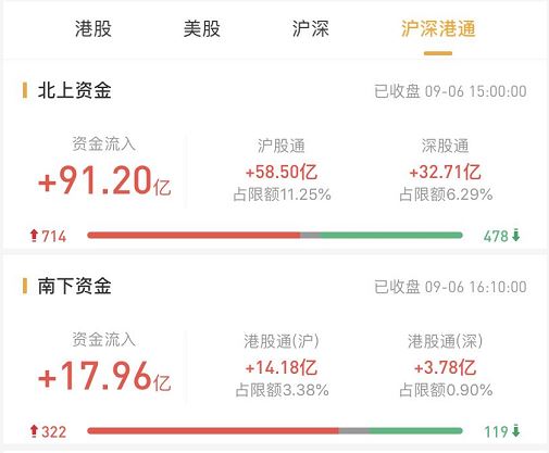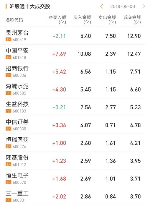 北上资金今日净流入逾91.2亿元,沪股通净买入中国平安7.69亿元,招商银行5.42亿元,海螺水泥4.30亿元,中信证券3.36亿元。