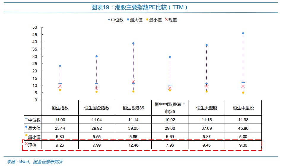 从港股目前的估值水平来看,恒生指数、恒生国企、恒生大中型股等各项指数的动态市盈率在大盘触底至今仍然在历史中位线水平之下。这样来看,说明港股处于历史较低估的时间。