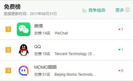 陌生人社交的元老级产品要数陌陌了,陌陌最初的设计很简单,“附近的人+聊天”,上线的第一个月便获取了10万用户,甚至一度冲上了社交榜的第3名,仅次于微信和QQ。