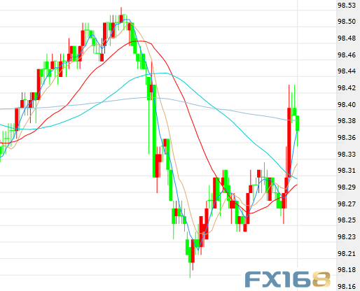鲍威尔讲话期间,美元指数跳涨18点,至98.43。