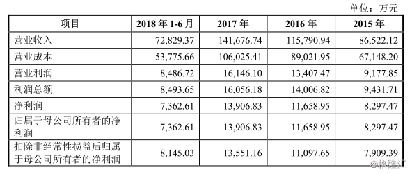 据招股书显示,2015年至2018年1-6月,祥鑫科技分别实现营业收入8.66亿元、11.58亿元、14.17亿元、7.28亿元,对应的各期净利润为8297万元、1.16亿元、1.39亿元、7362万元。总体来说,营业收入和净利润呈稳定上升,但是较同行而言,还存在一定的差距。