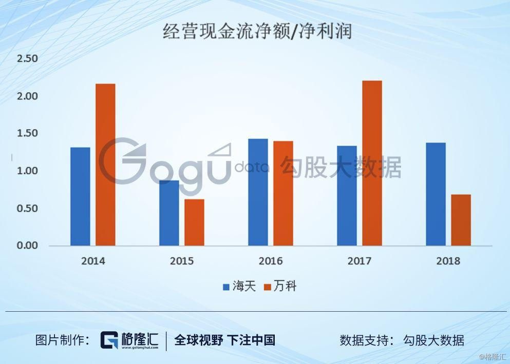 利润的质量一方面指含现金量,海天的经营性现金流净额非常漂亮,长年稳定地超过净利润,万科以前一般,最近几年改善了许多,其他不少房企,经营性现金流净额长年是负的。