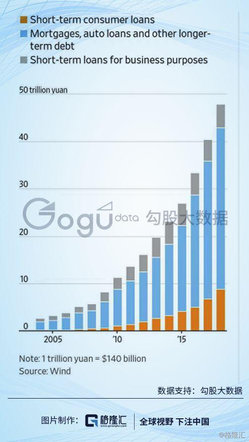 国内的家庭负债,从绝对额看,过去几年一直在快速上升,不仅房贷、车贷等长期借款飙升,短期的消费贷这几年也飞快上升。