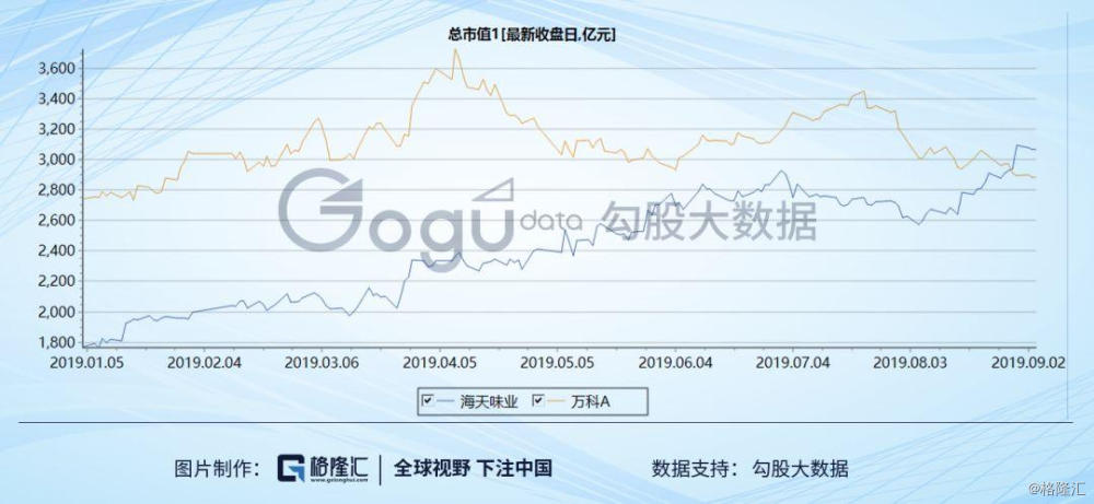 8月30日,海天味业再度大涨5个点,创历史新高,同日万科跌0.65%,一涨一跌,两者的市值差异扩大到了200亿。