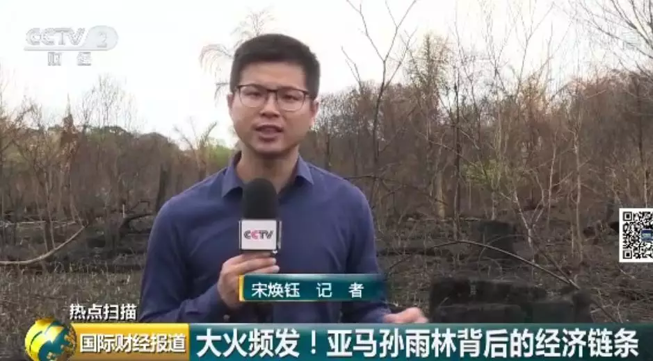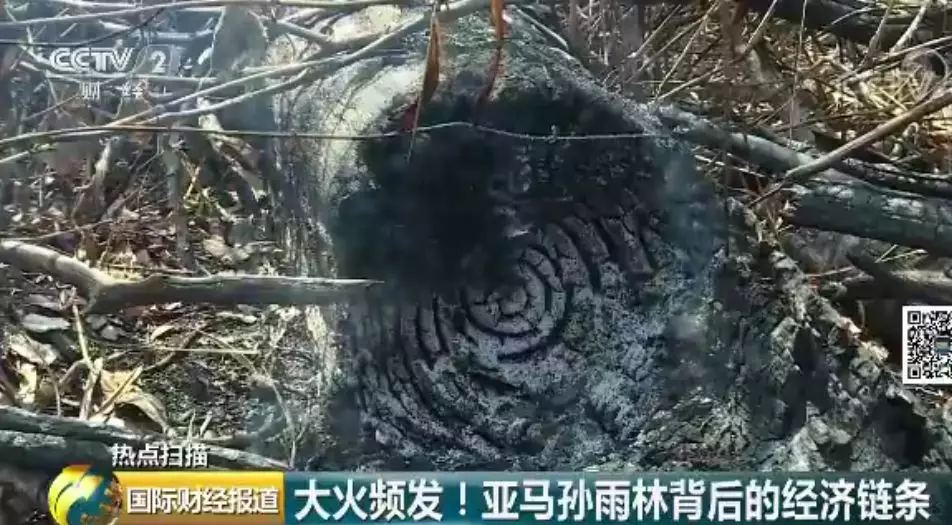 记者 宋焕钰:我现在是在一片被烧毁的雨林里面,大家可以看到,现在我身后有很多的树桩,很明显在这个大火之前,有人已经将这里的树木进行了砍伐。