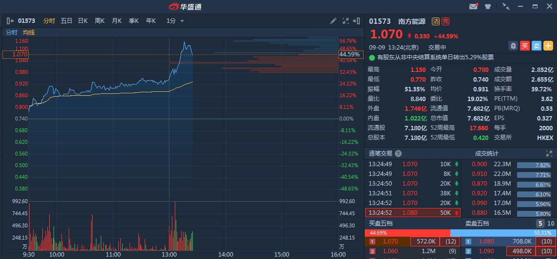 新浪港股讯 9月9日消息,南方能源获调入港股通名单,股价放量大涨40%。该股曾遭沽空机构 Emerson Analytics狙击,股价一度暴跌逾90%。