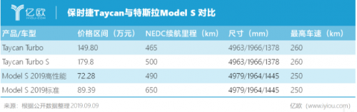 目前,保时捷Taycan已经开始接受预定,将推出两个版本Turbo和Turbo S,欧洲售价分别为15.21万欧元和18.54万欧元,国内指导零售价分别为149.8万元和179.8万元。与此同时,马斯克公开反对了保时捷用“涡轮”来描述Taycan。马斯克认为:“涡轮的作用是让内燃机引擎有更强的动力,但不会给车增加过多重量。”