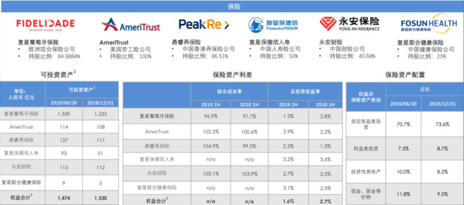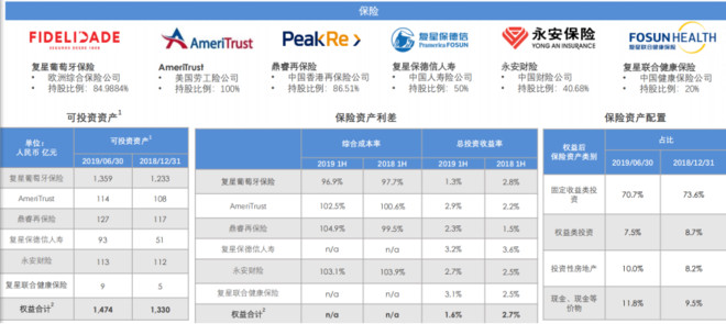 复星的保险业务板块: