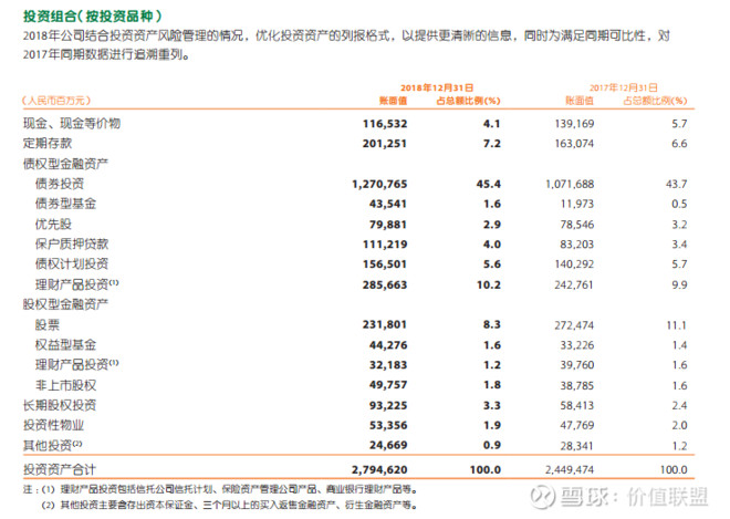 再看看中国平安的保险资金投资组合: