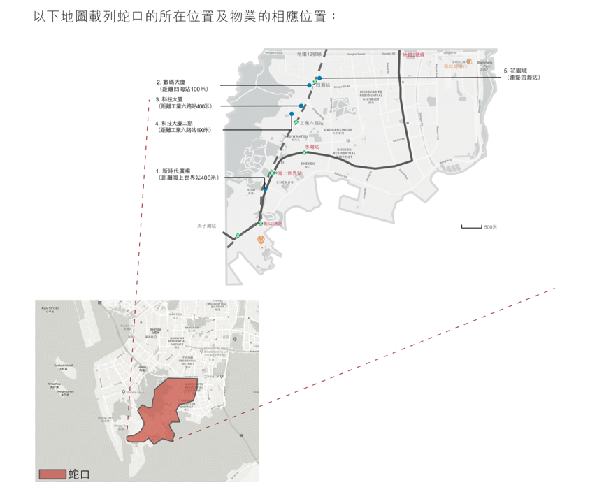 招商房托基金目前所持的五项物业位于深圳市南山区蛇口片区,属于前海蛇口自贸区范围,乘坐公共交通工具前往广州、香港、澳门及珠海所需时间均在一小时之内。物业地理位置优越,交通便利。