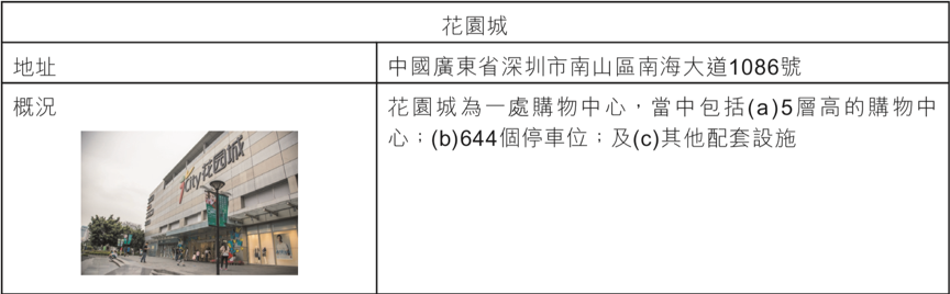 花园城为一处购物中心,包含5层高的购物中心、644个停车位及相关配套设施。可租赁总面积为1.14万平方米,租户数量为128名。当前租用率为79.6%,每平米平均月租为154.9元,物业评估价值达14.87亿元。