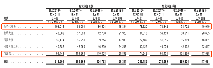 按2018年收入贡献占比统计,基金所持物业中的花园城及新时代广场贡献收益净额占比较高,分别贡献收益净额1.04亿元、7872万,分别占比34.78%和26.25%。
