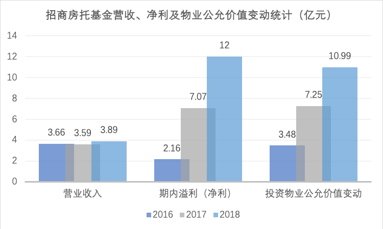 相比之下,招商房托基金的净利润增长相当可观。2016-2018年,基金分别录得净利3.48亿元、7.25亿元及10.99亿元,年复合增长率高达46.71%。净利润大幅增长的原因在于投资物业公允价值大幅升值,即基金所持的五个物业的评估价值在过去数年大幅上涨。简单而言,基金收益的提升是因为过去数年房地产价格的大幅攀升。