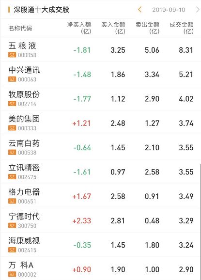 深股通净买入宁德时代2.33亿元,净买入格力电器1.67亿元,净卖出五粮液1.81亿元。