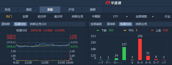 周二全球投资气氛疲软,美股持续下滑。收盘标普500涨0.03%报2979.39点;纳指跌0.04%报8084.16点;道指涨0.28%报26909.43点。