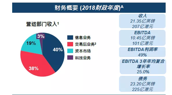 据悉,2018年,LSEG营收21.35亿英镑(约合187.41亿人民币),EBITDA为10.35亿英镑(约合90.85亿人民币),EBITDA 3年年均复合增长率高达25.0%。