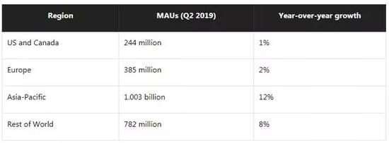 这对Facebook来说是个大问题,因为上个季度美国和加拿大的用户贡献了其48%的收入,尽管他们只占其总MAU的10%。它在欧洲的用户贡献了其24%的收入,但仅占其MAU的16%。简单地说,Facebook的大部分收入来自增长较慢的发达市场,但它的大部分用户增长来自收入较低的发展中市场。