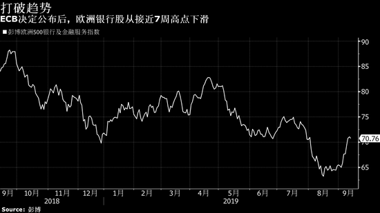 新浪财经 9月12日消息,欧洲央行周四将本已是负值的基准利率进一步下调,然后又采取措施部分上缓解负利率对银行业的影响,但这还不足以恢复投资者对欧洲银行业的信心,导致银行股走低。