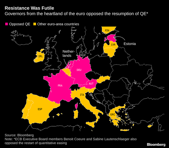 在德拉吉的八年任期内,央行内部从未对主要货币政策出现过如此大分歧。裂痕的程度可能会使批评人士质疑该决策的合法性。
