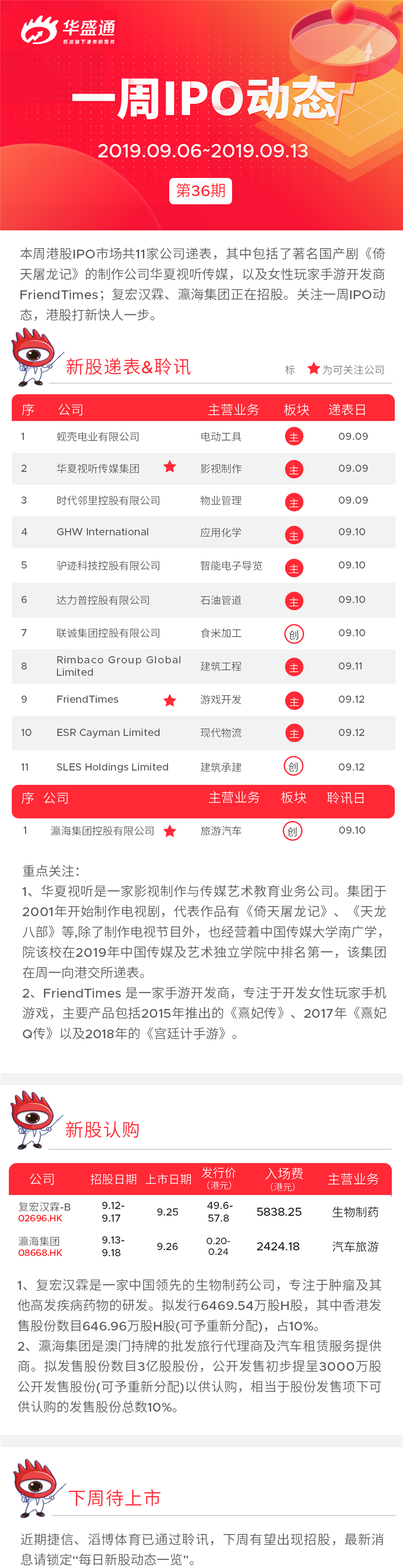一周IPO动态 | 影视制作商华夏视听递表 复宏汉霖火爆认购中