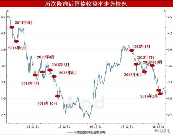 2015年五次降准,中债10年期国债到期收益率更是从当年3.70%的高位,一度逼近2.70%。而2018年初的定向降准,中债10年期国债到期收益率一周降幅也达到了3.69bp。