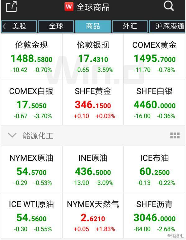 商品:贵金属、原油全线回落