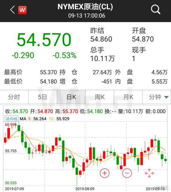 上周五NYMEX原油期货收跌0.53%报54.57美元/桶,周跌3.45%,三周来首次下跌。