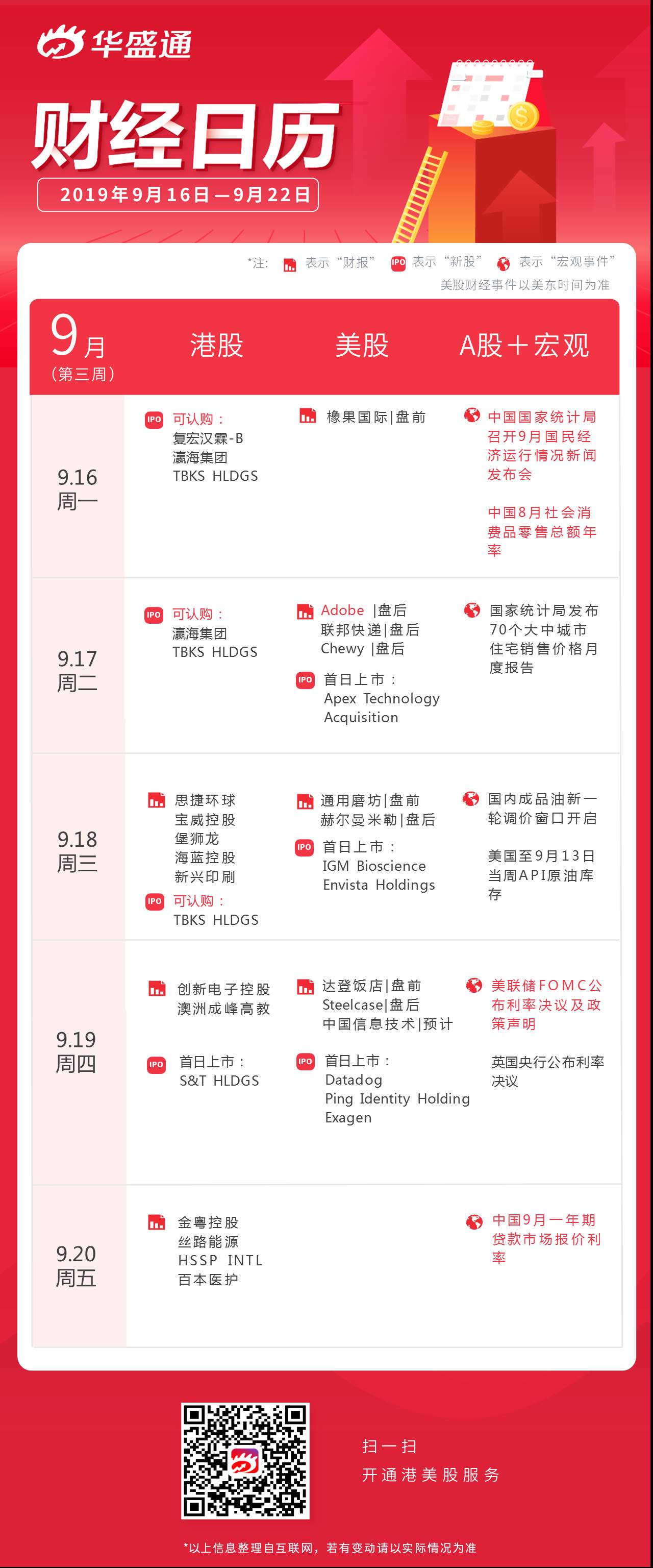 以上即为本周港美股、A股及宏观资讯一览,祝新的一周投资顺利~点击“日历”专区,了解本周更多财经大事↓