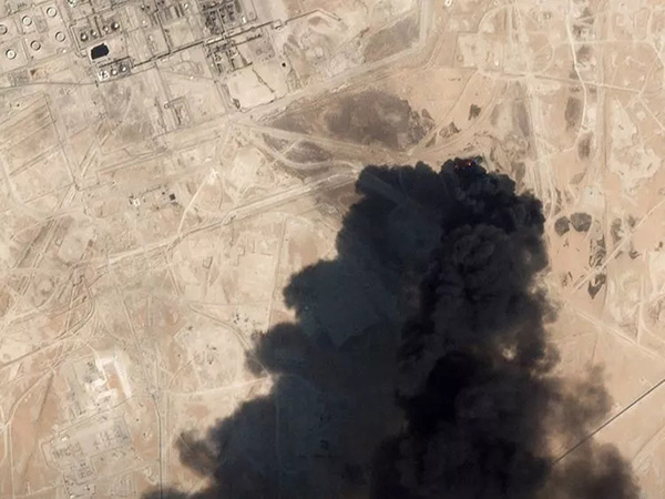 9月14日,一张卫星图显示沙特阿美重要的石油设施Abqaiq遭遇袭击,浓烟滚滚。来源:路透社