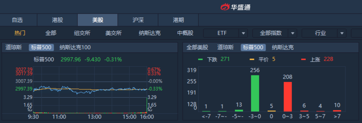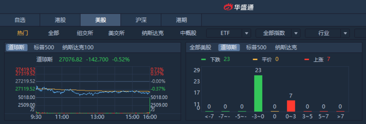 周一,受油价上涨影响,美股全线下跌,道指跌逾140点,终结八连涨。截止收盘,道指跌0.52%,标普500跌0.31%,纳指跌0.28%。
