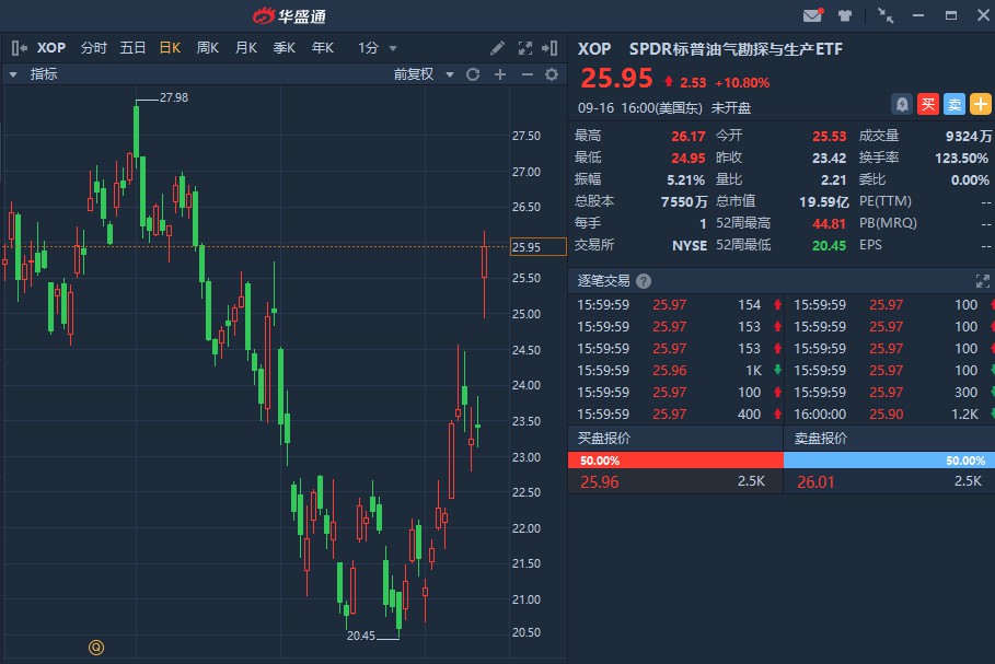 美股方面,有两个ETF可供我们投资选择,第一个是SPDR标普油气勘探与生产ETF,代码为XOP。